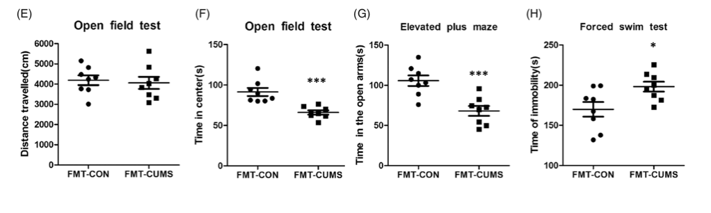 Li, N., Wang, Q., Wang, Y., Sun, A., Lin, Y., Jin, Y., & Li, X. (2019). Fecal microbiota transplantation from chronic unpredictable mild stress mice donors affects anxiety-like and depression-like behavior in recipient mice via the gut microbiota-inflammation-brain axis. Stress,22(5), 592-602. doi:10.1080/10253890.2019.1617267
