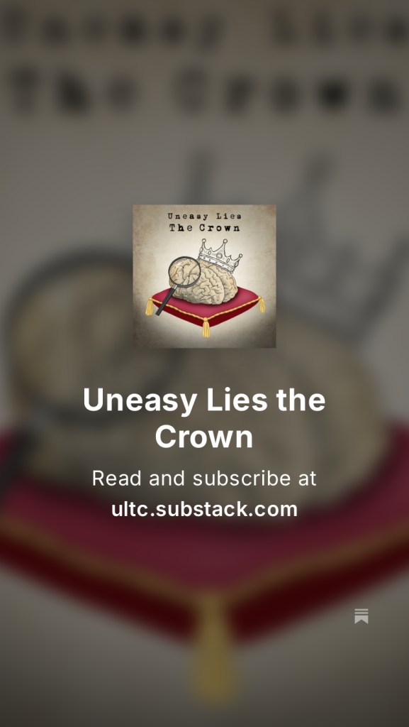 We are very excited to announce that Uneasy Lies the Crown can now be found on Substack! For now, you’ll still be able to find our posts and podcast episodes here on our site, but over on the Substack, you’ll be able to enjoy revamped archival content along with new posts. Think: the ULTC content you love but sleeker, chicer, and sharper than ever. Subscribe now to get every post sent straight to your email. We’ll see you there!